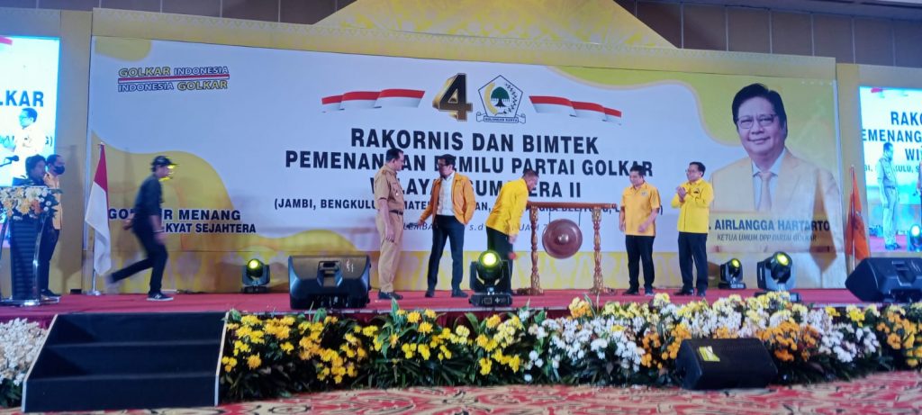 “Hari ini saya mewakili Ketum (Airlangga Hartarto) membuka Rakornis dan Bimtek Pemenangan Pemilu Sumatera 2, yang meliputi provinsi di Sumbagsel (Sumatera Bagian Selatan), bagaimana kita mengkonsolidasikan pemenangan pemilu, agar meraih kemenangan,” kata Loedewick.