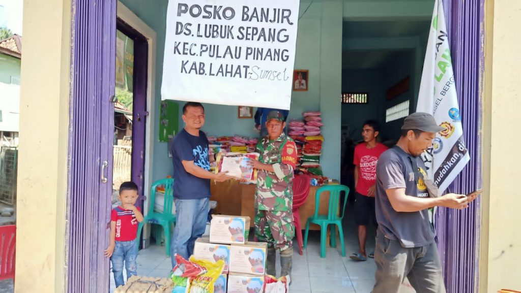 Bantuan diterima langsung oleh Ketua Tim Posko Banjir, Koptu Edi Saputra, bersama Kepala Desa Lubuk Sepang, Ferli Trinurhadi, pada hari, Selasa (21/3/23) di Kecamatan Pulau Pinang, Kabupaten Lahat.