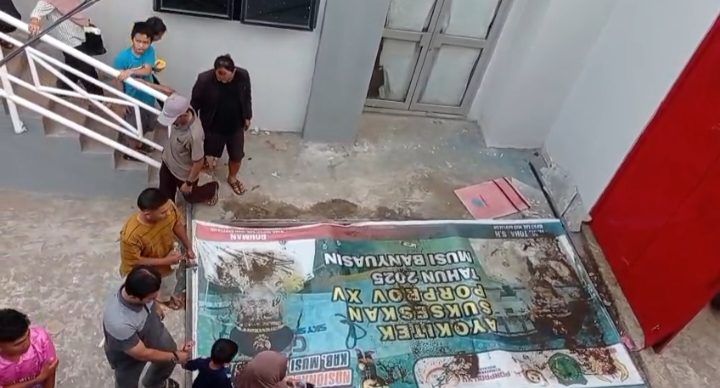 Spanduk Bergambar Orang Nomor Satu Muba Roboh di Arena Porprov 2025, Panitia Dinilai Abai.